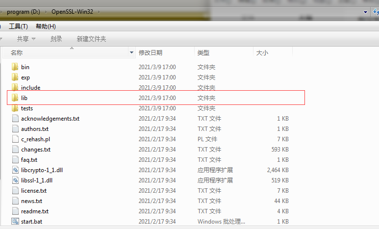 上面是OpenSSL64位的安装包,下面是OpenSSL 32位的安装包。带Light是精简版本,建议下载不带Light的版本。下面是我本地电脑的安装目录:
